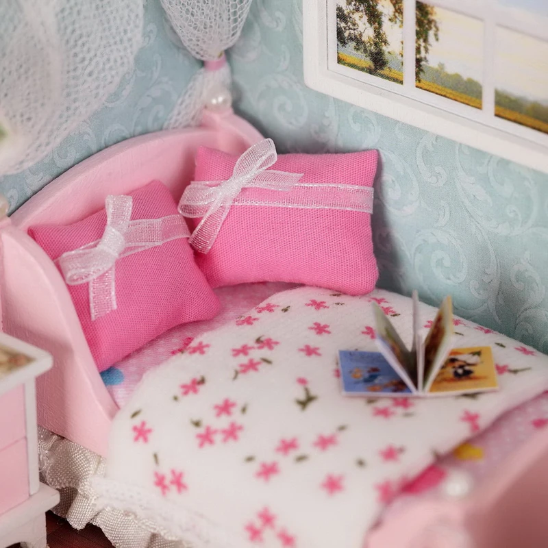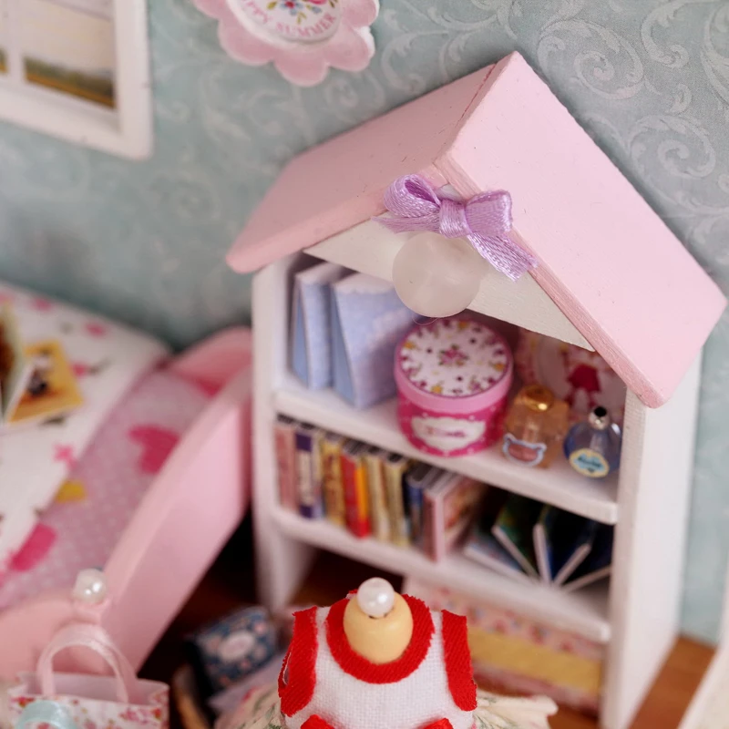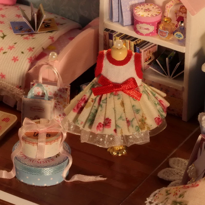Kaufen Billig TuKIIE DIY Puppe Haus Möbel Miniatur 3D Holz Puppenhaus Mit Staub Abdeckung LED Handmade Spielzeug Für Kinder H009 # E Preise Online.