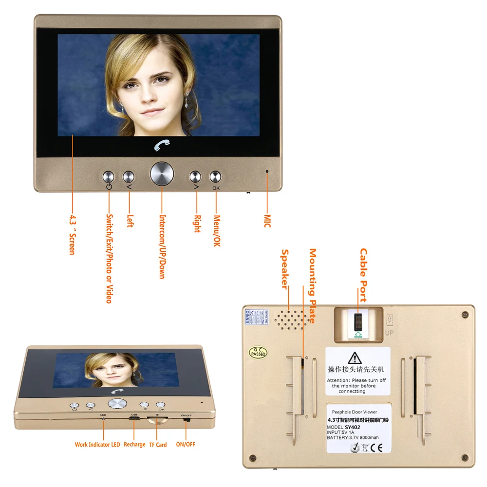 . Kaufen Günstig Yobang Sicherheit 4,3 \"Tft bildschirm Digitale Intercom Türspion Viewer Kamera PIR Bewegungserkennung Türklingel Preise Online.
