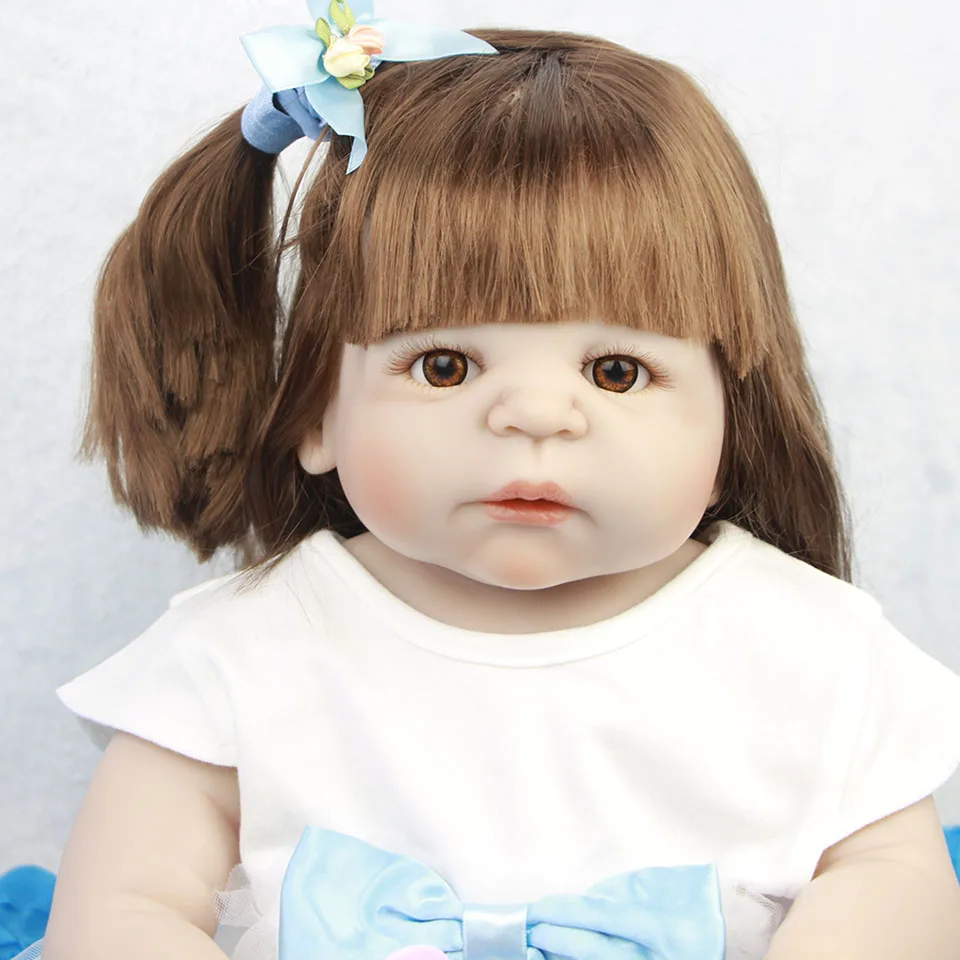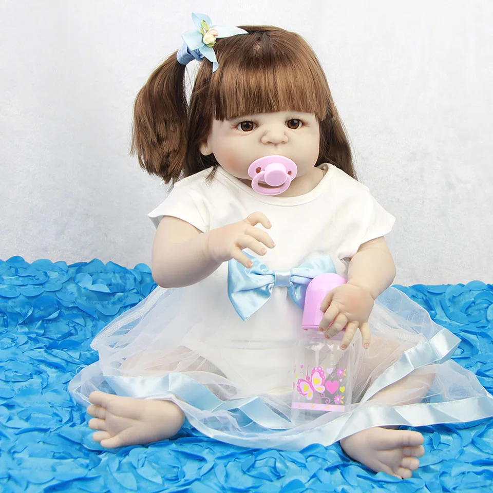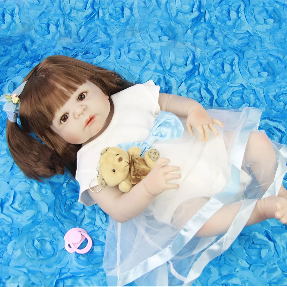 Günstige Kaufen 23 silikon Reborn Baby Puppen Realistische Reborn Puppen Volle Vinyl Körper Lebensechte Mädchen Babys Lange Haar Sammeln bebe Spielzeug Preise Online