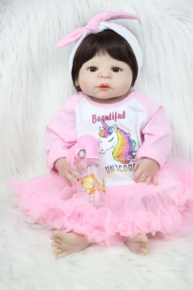 . Billige Kaufen 55 cm Volle Körper Silikon Reborn Baby Mädchen Spielzeug 22 zoll Neugeborenen Baby Prinzessin Kleinkind Puppe Mit Einhorn Kleid Schöne geburtstag Geschenk Preise Online.