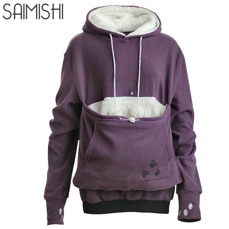 Kaufen Billig Saimishi Lila Stickerei Große Tasche Pullover Frauen Sweatshirt Herbst Winter Warme Mode Mit Katze Liebhaber Pet Hund Hoodies Preise Online.