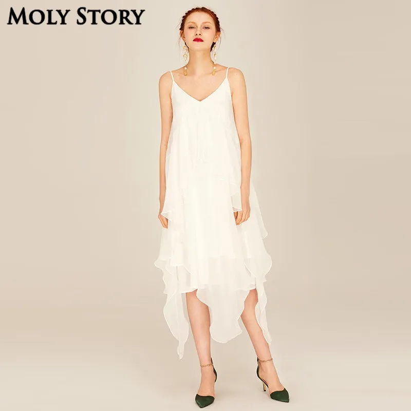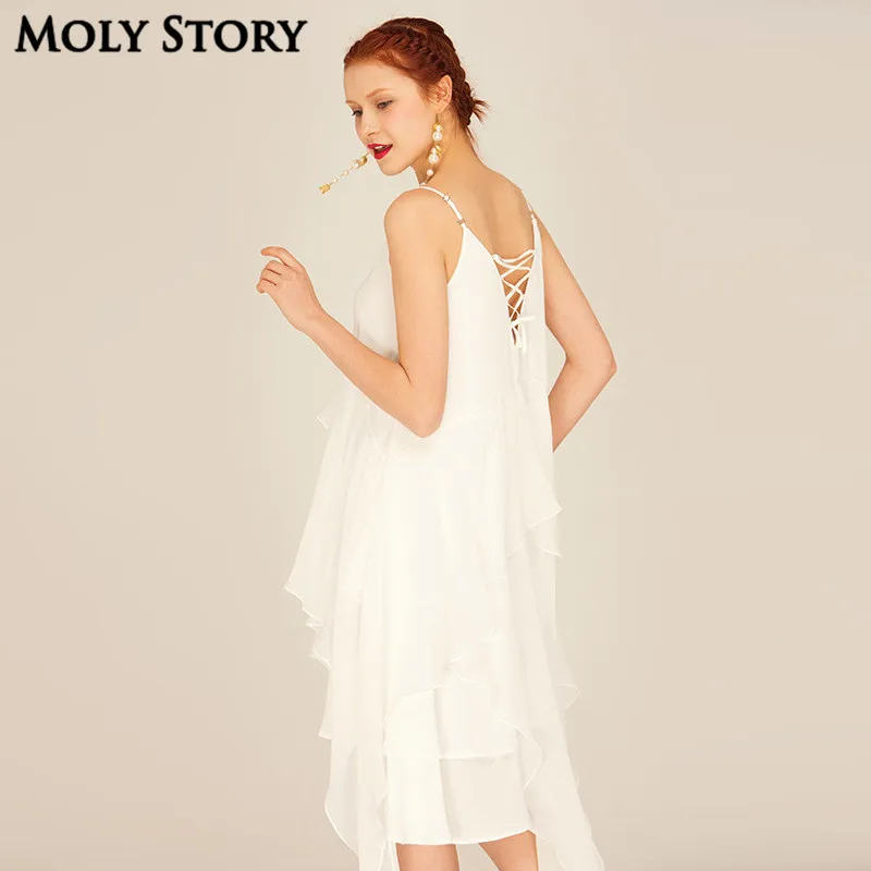 Günstige Kaufen Neue sommer holiday beach langes weiß dress silk isolationsschlauchbügel dress robe longue zurück lace up strappy dress Preise Online.