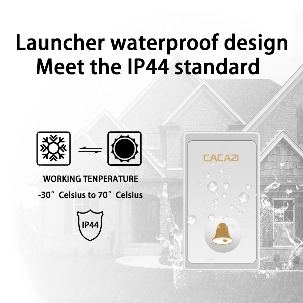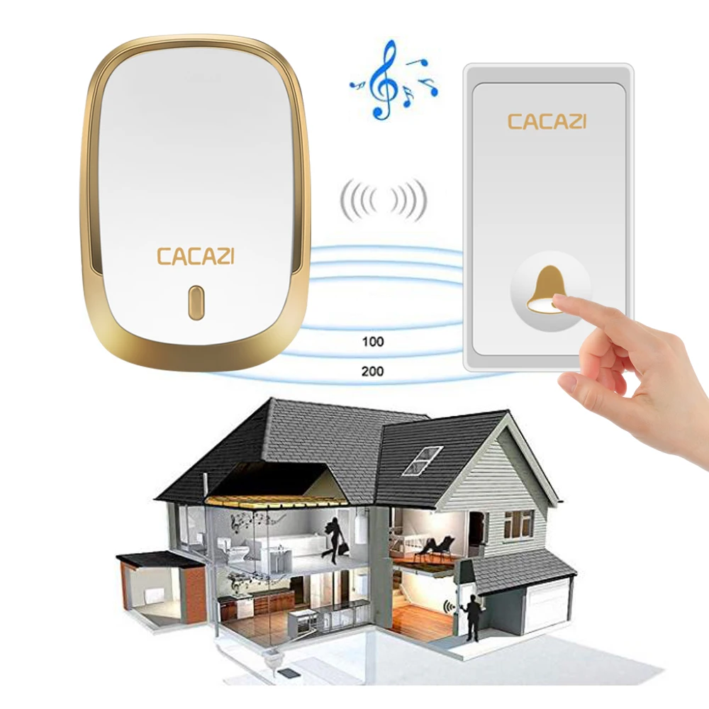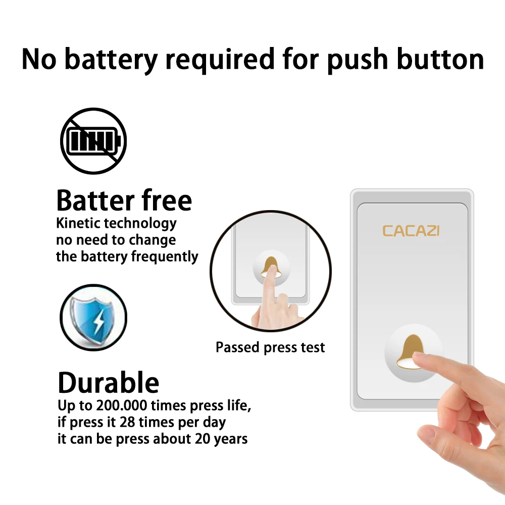 . Kaufen Günstig CACAZI Self Powered Wasserdichte Drahtlose Türklingel Keine Batterie Taste LED Licht Startseite Cordless Glocke UNS EU Plug Receiver 36 ringe Preise Online.