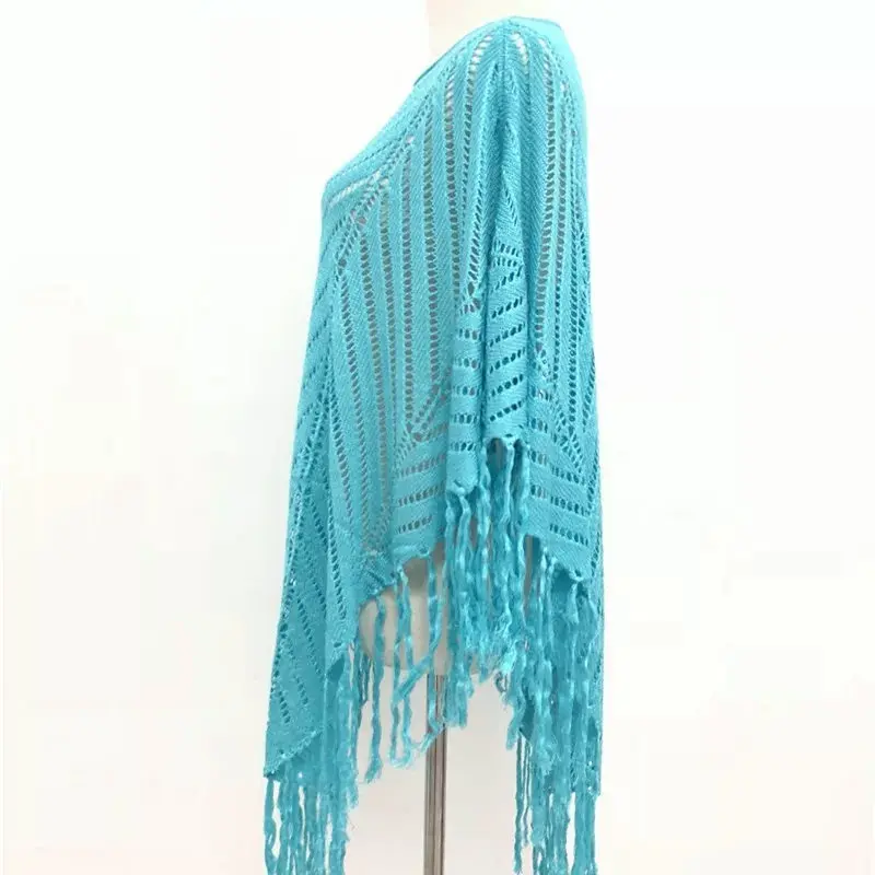 . Günstige Kaufen NODELAY Frauen Stricken Bikini Bademode Cover Up Pareo 2018 Plus Größe Quaste Cover Up Strand Tragen Weibliche Lose Strand Kleid tunika Preise Online.