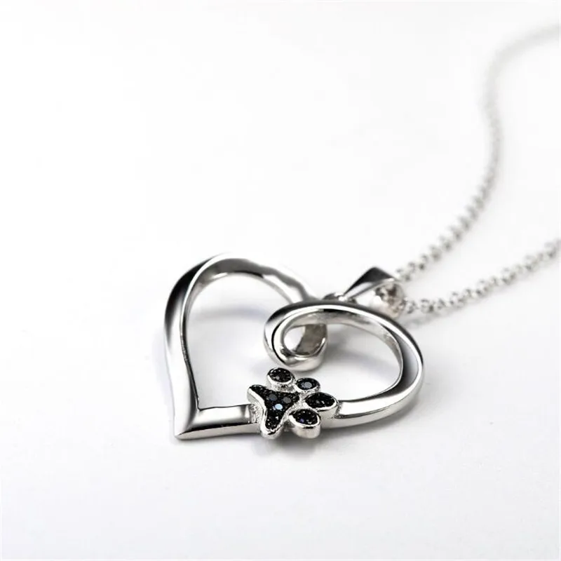Kaufen Billig Cute Pet Puppy Palm Pfote Marke Druck Herz Halskette für Frauen Mode Hund Pfote 925 Sterling Silber Halskette Halsband Preise Online