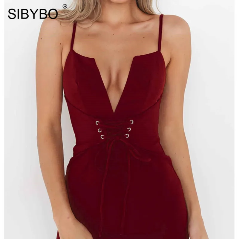. Kaufen Günstig Sibybo Neue Sommer Verband Bodycon Kleid 2018 Tiefem V ausschnitt Spitze Up Midi Halter Sexy Ärmellose Club Party Kleider Vestidos Preise Online.