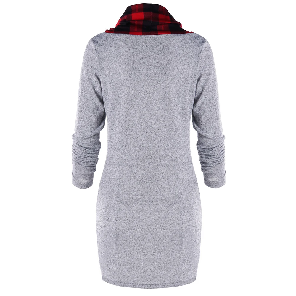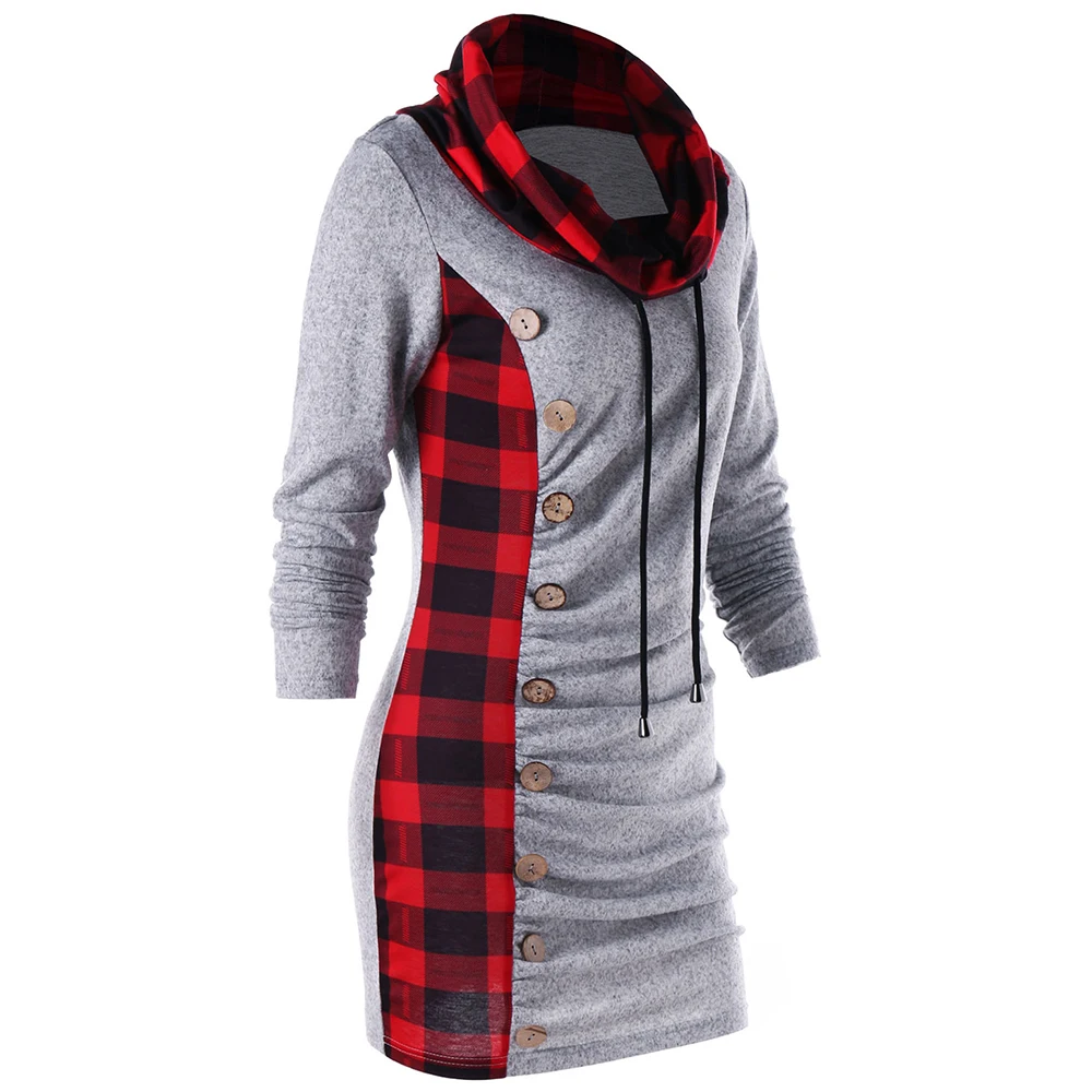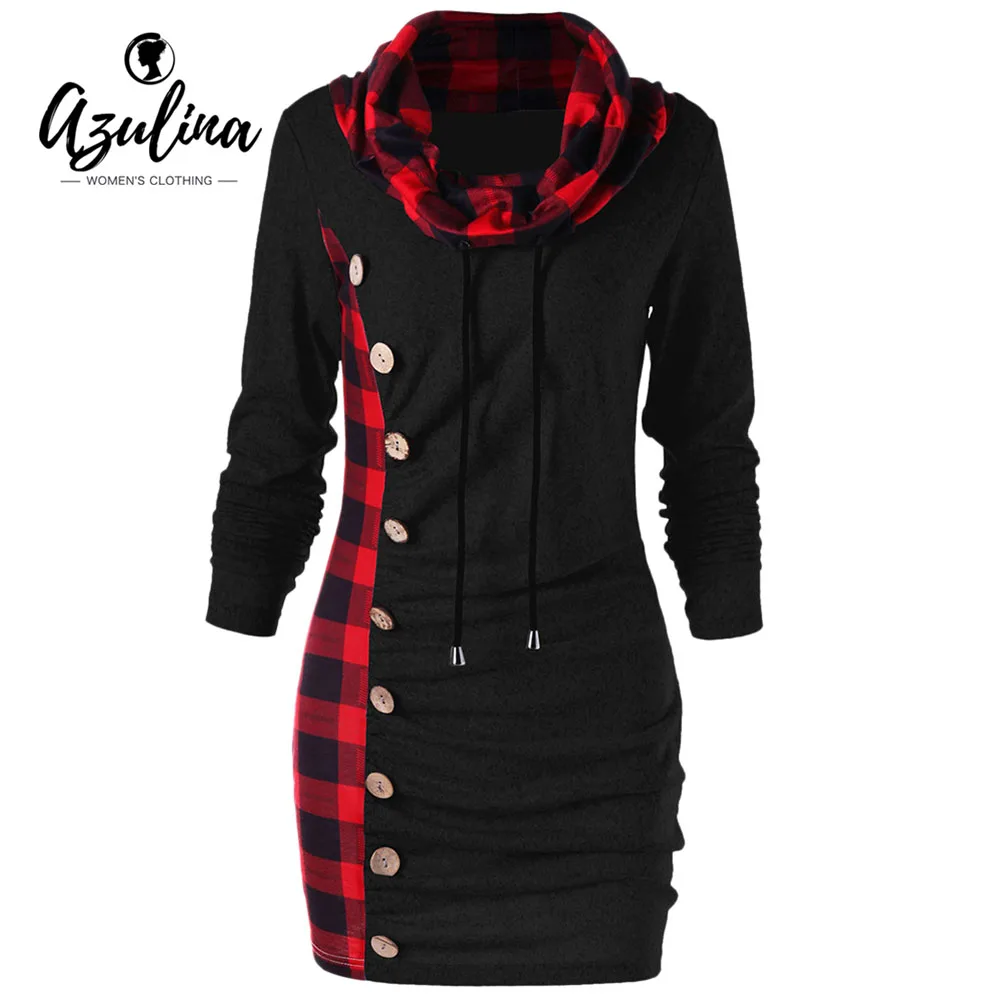 Kaufen Günstig AZULINA Plus Größe Kleid Frauen Taste Up Plaid Gugel Neck Kordelzug Casual Sweatshirt Kleid Kleidung Herbst Damen Kleider Vestido Preise Online.