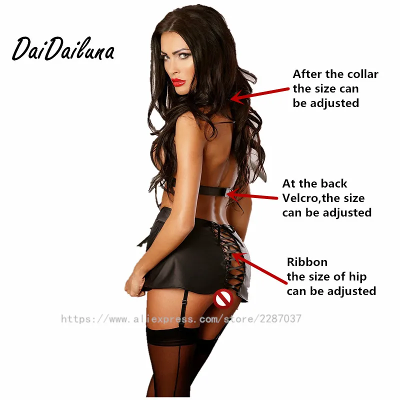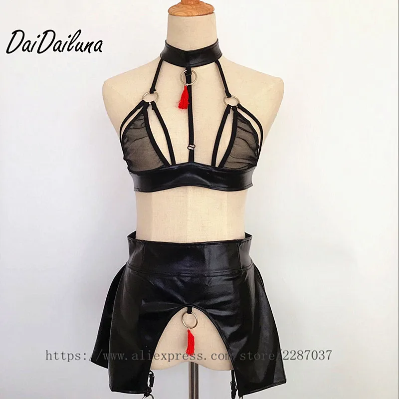 . Billige Kaufen DaiDaiLuna Faux Leder Sexy Dessous Frauen Rolle Spielen Cosplay SM Sexy Kostüme Dessous + thongs + strumpfband + strümpfe Luru sex Kleid Preise Online.