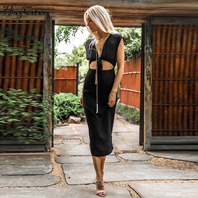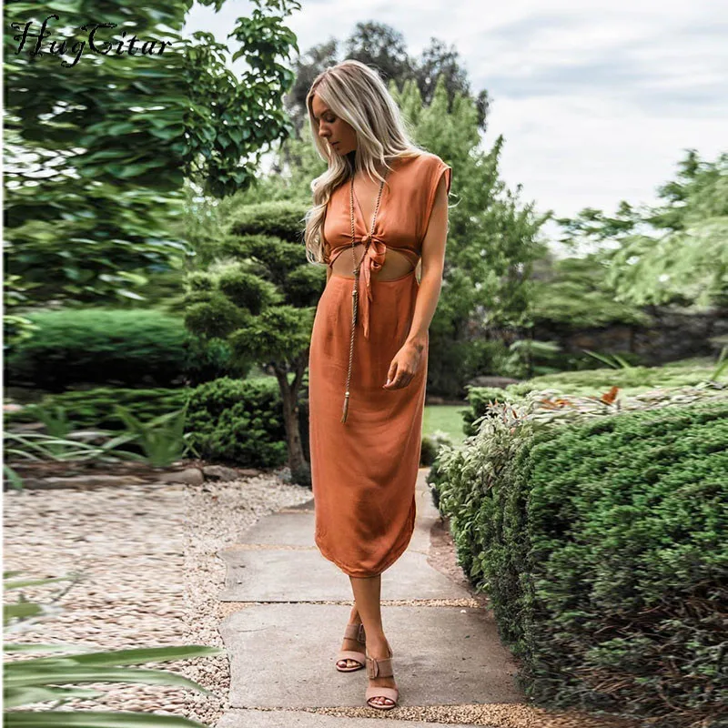. Kaufen Günstig Hugcitar chiffon V ausschnitt aushöhlen spitze up bandage bogen sexy lange kleid 2018 frauen mode böhmischen sommer kleider Preise Online.