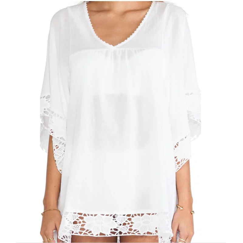 Günstige Kaufen Frauen Chiffon Abdeckung Up Rock Strand Tunika Kleid 2018 v Neck Hülse Bikini Lose Abdeckung Ups Mini Beachwear T0132 Preise Online.