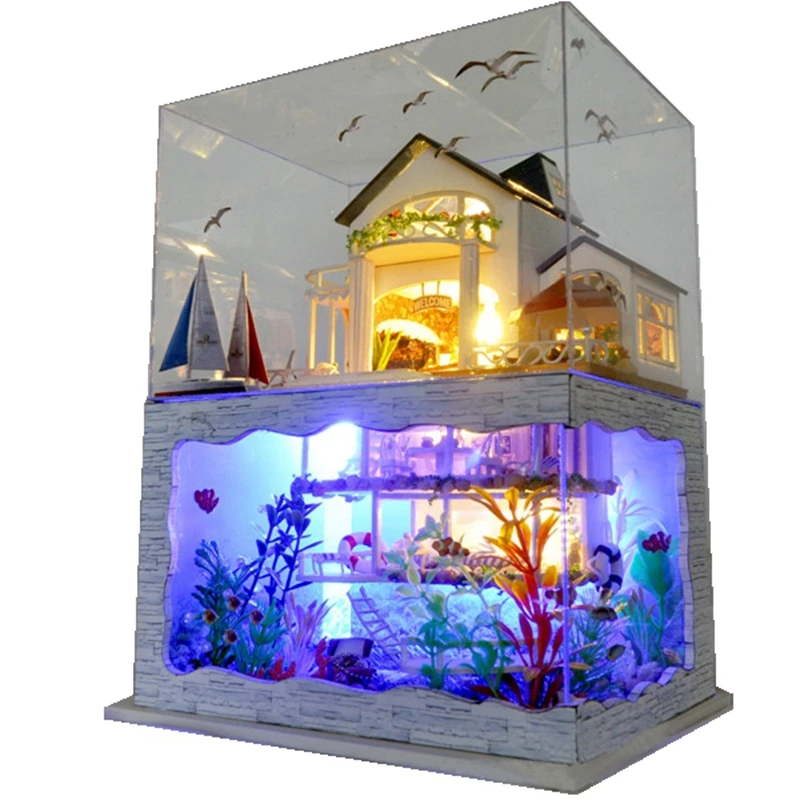 Kaufen Günstig Puppe Haus Poppenhuis Casa De Boneca Hawaii Villa Auf Dem Meer Puppenhaus Modell Holz Spielzeug Möbel Cabrio Puppenhaus TC4 Preise Online.