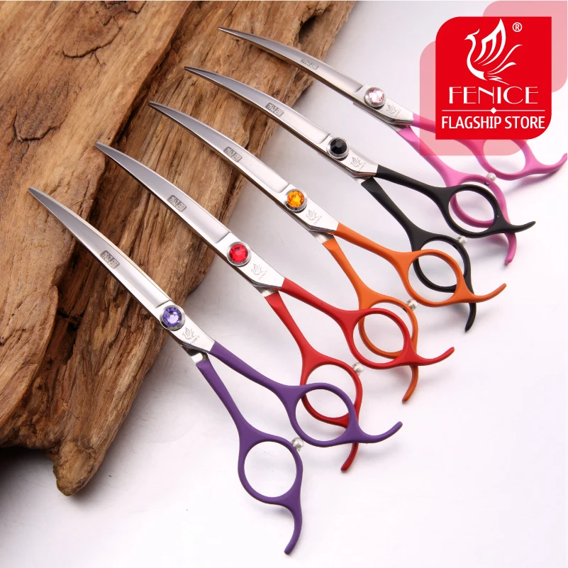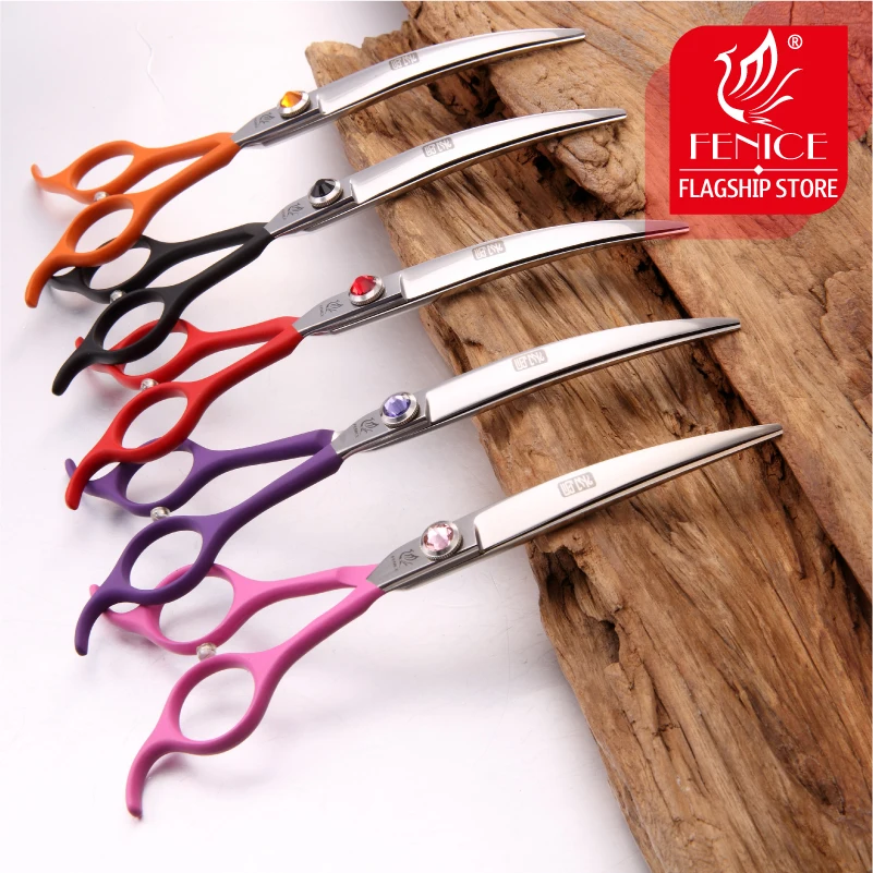 . Kaufen Günstig Fenice Professionelle bunte 6,5 zoll pet hund kleine tier pflege haar cut schere gebogene schere Preise Online.