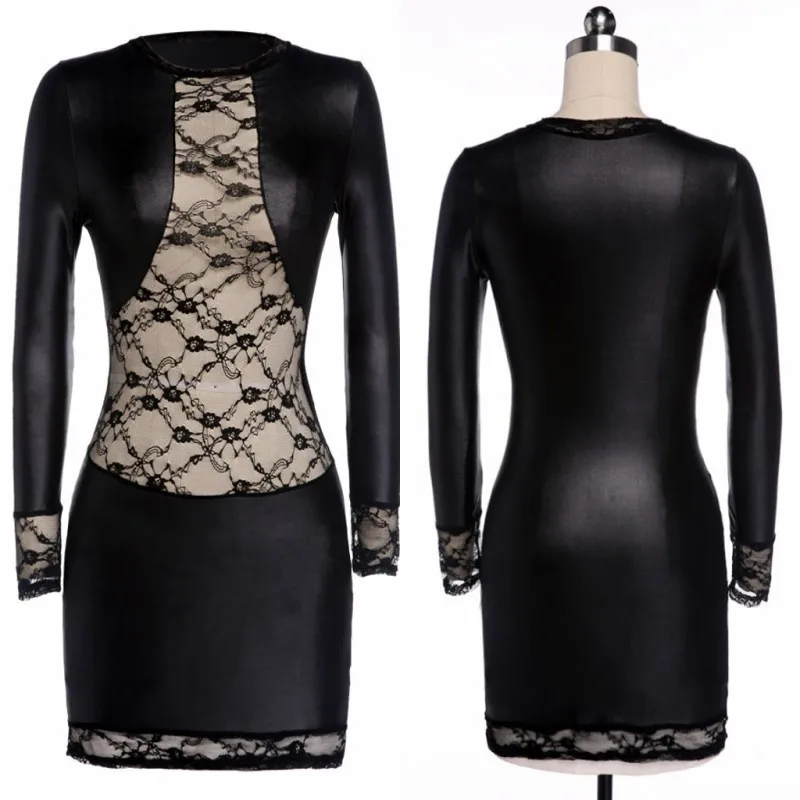 . Kaufen Günstig Erotische Dessous Für Frauen PU Leder Langarm Mesh Sehen durch Babydoll Kleid Pole Dance Porno Sex Latex Nachtwäsche unterwäsche Preise Online.