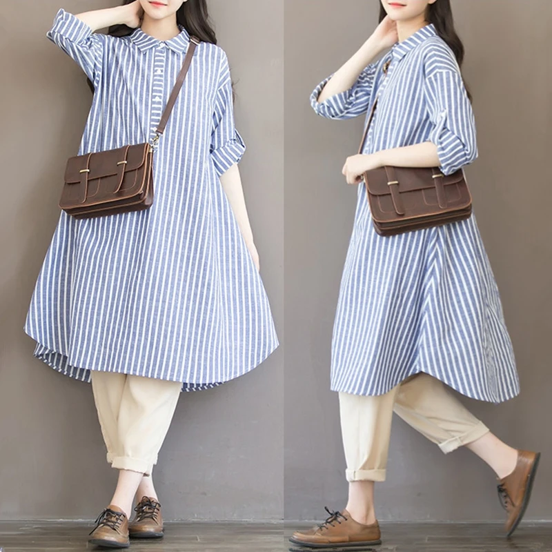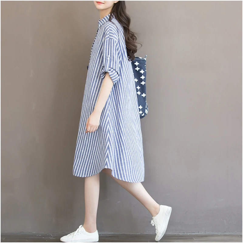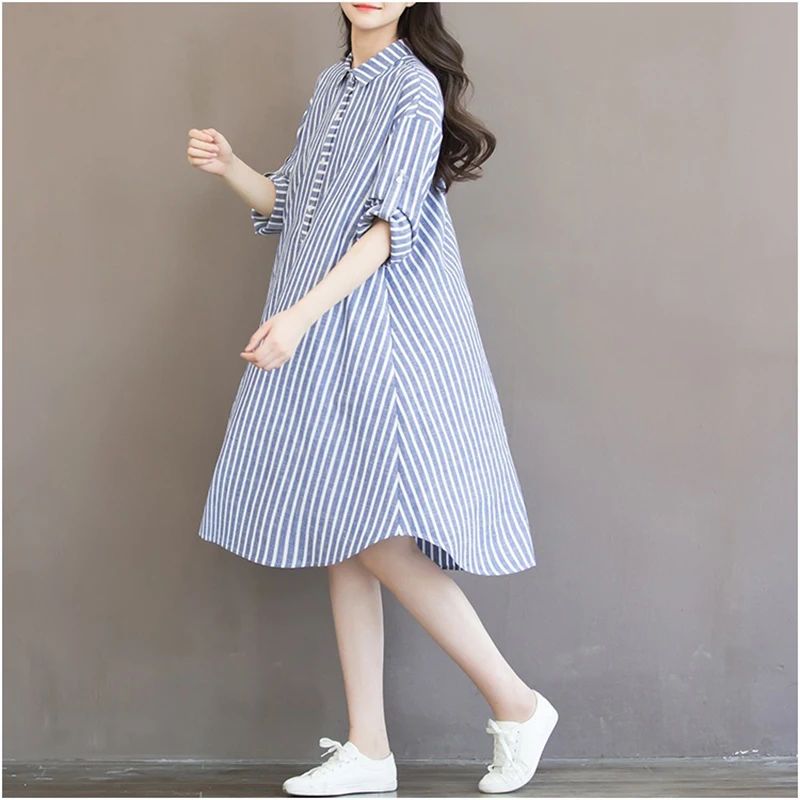 . Günstige Kaufen SIMPVALE Große Größe Gestreiften Kleid Shirts Sommer Frauen Blau Und Weiß Casual Kleider Kurze Button Up Kleid Elegante Preise Online.