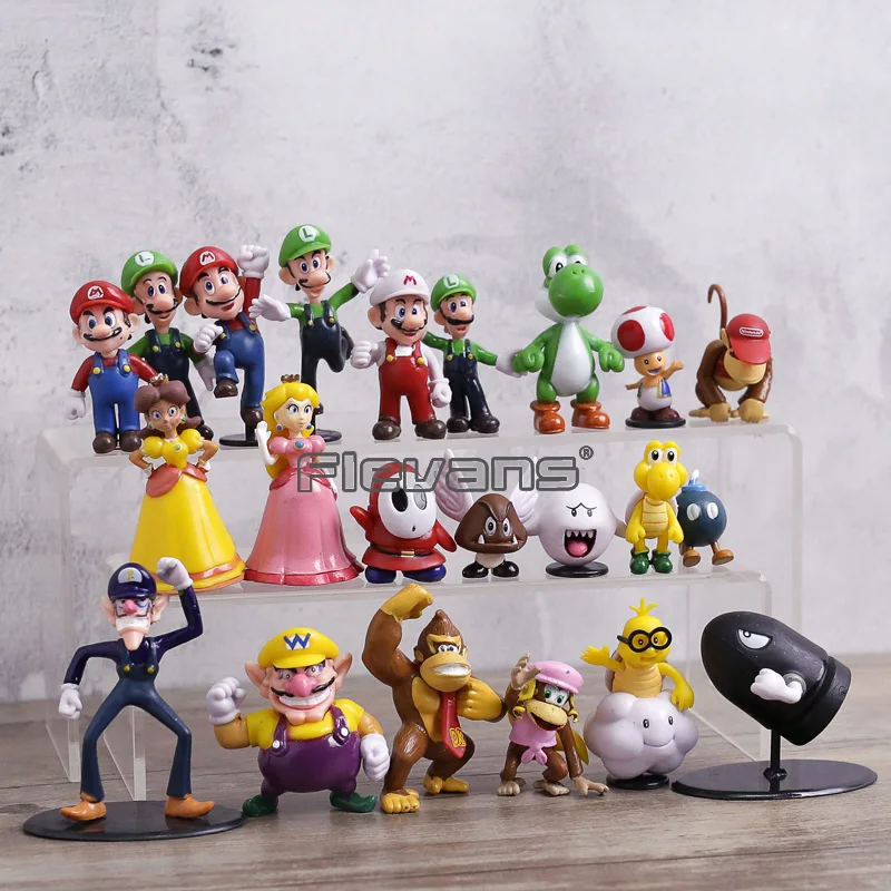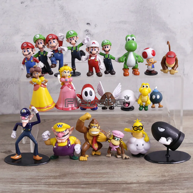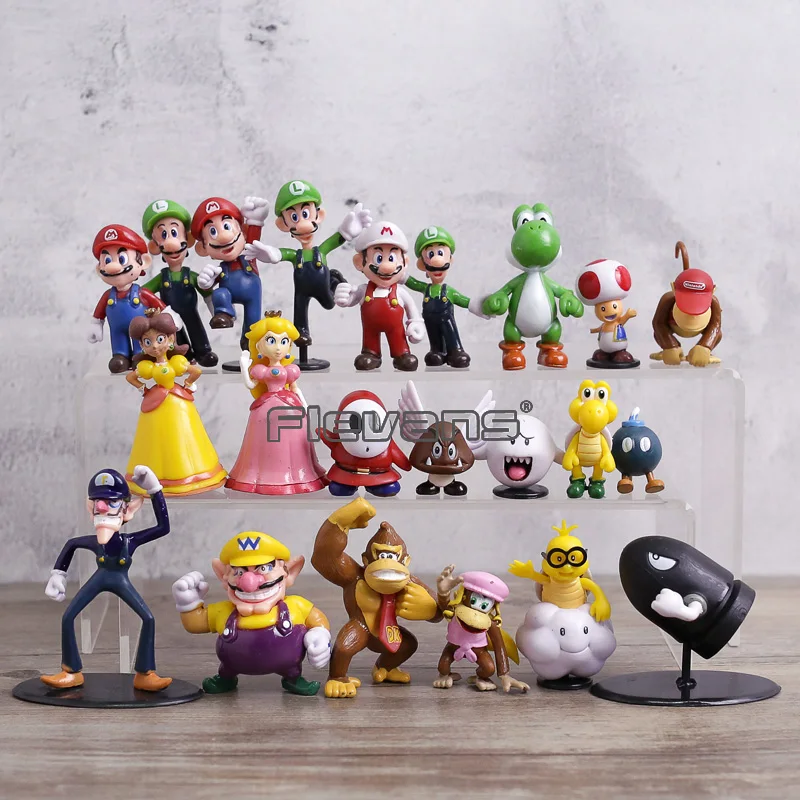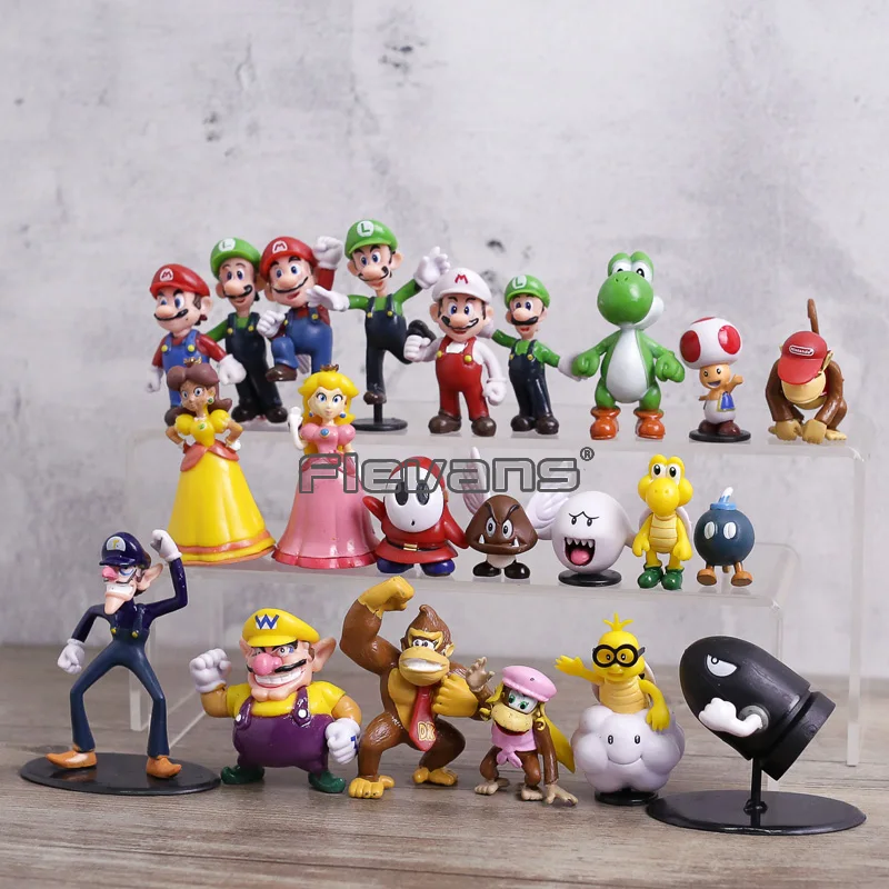 Günstige Kaufen Super Mario Bros Figuren 22 teile satz Mario Luigi Pilz Bowser Yoshi Pfirsich Daisy Goomba Koopa Mini PVC Figuren Spielzeug Puppen Preise Online.