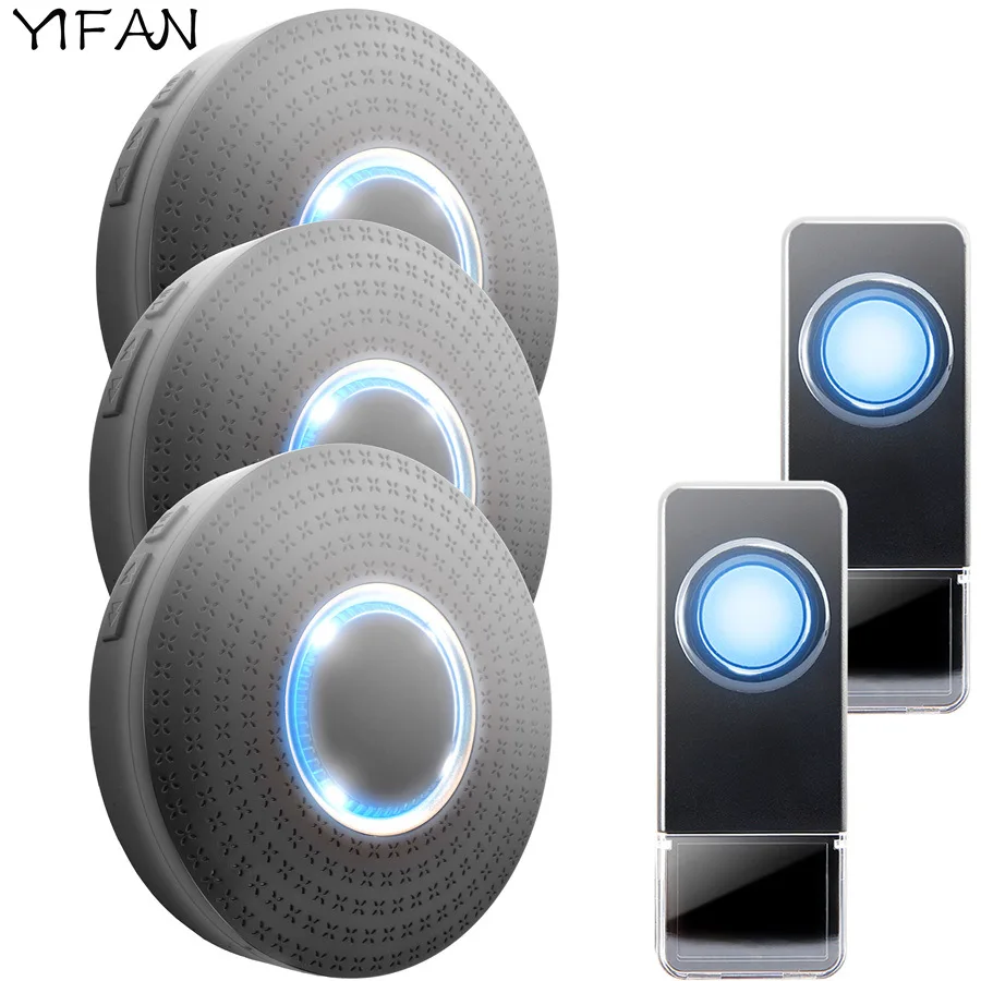 . Billige Kaufen YIFAN Wasserdichte Drahtlose Türklingel Eu stecker 300 mt Remote smart Tür Glocke Chime ring anruf 2 taste 3 empfänger keine batterie 110 v 220 v Preise Online.